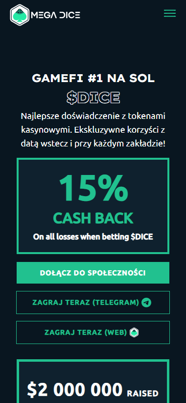 4. Mega Dice – Nowoczesne kasyno online, które jako jedno z pierwszych działa również przez komunikator Telegram. Oferuje szeroki wachlarz gier – od Plinko, przez crash, aż po klasyczne automaty – oraz wysokie jackpoty.